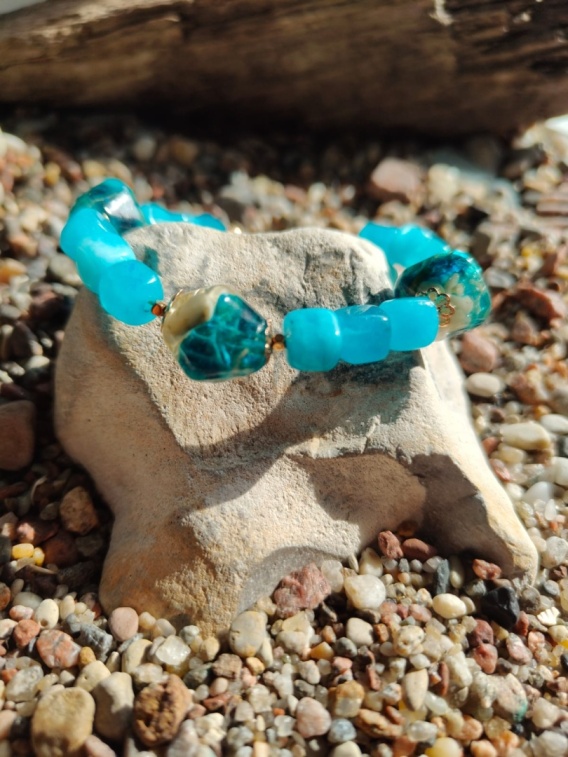 ✨ Bransoletka z żywicy epoksydowej i amazonitu – Ręcznie robiona biżuteria handmade ✨