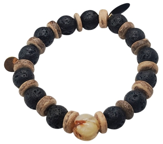 To bransoletka, która łączy naturalną surowość lawy, artystyczny urok morskich skarbów i surfingowy styl, idealna dla miłośników ręcznie robionej, wyjątkowej biżuterii 🌊💎🏄♂️